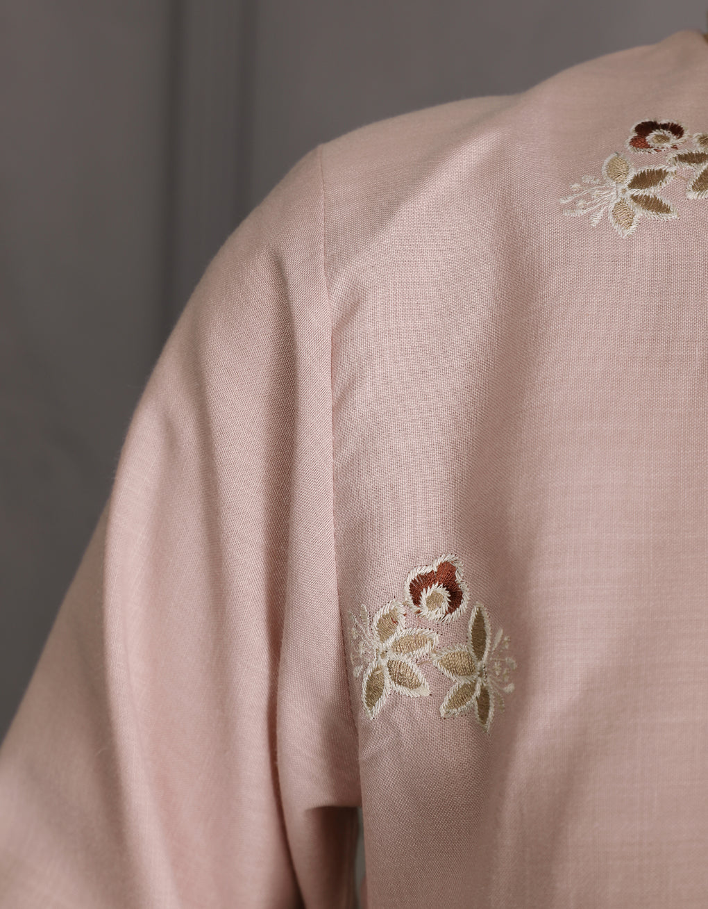 "Baju Kurung Pahang Moden Kaelin" blends tradition with a modern touch. Made from premium linen cotton with beautiful multicolor embroidery, it offers comfort and elegance in a long, graceful cut. Perfect for formal events or stylish everyday wear, it’s a timeless piece for those who appreciate both heritage and contemporary style.