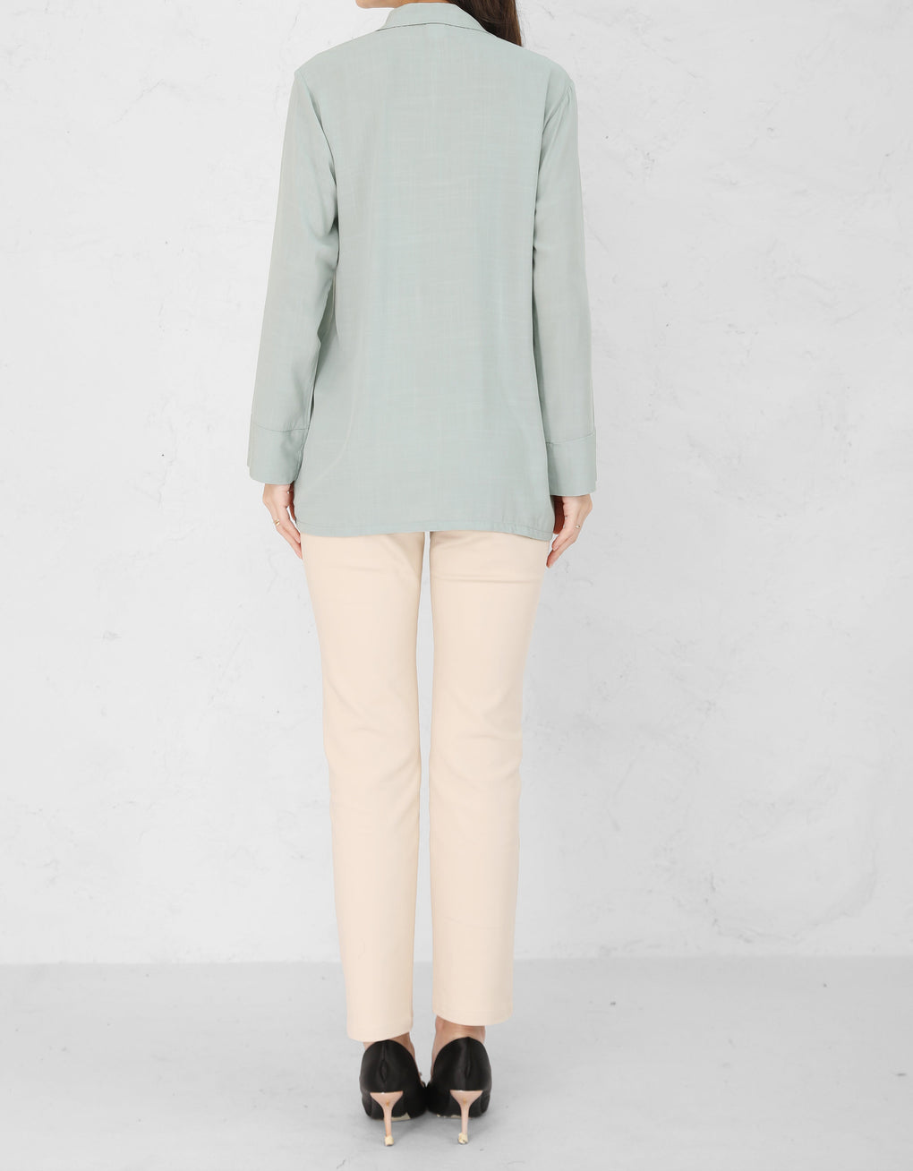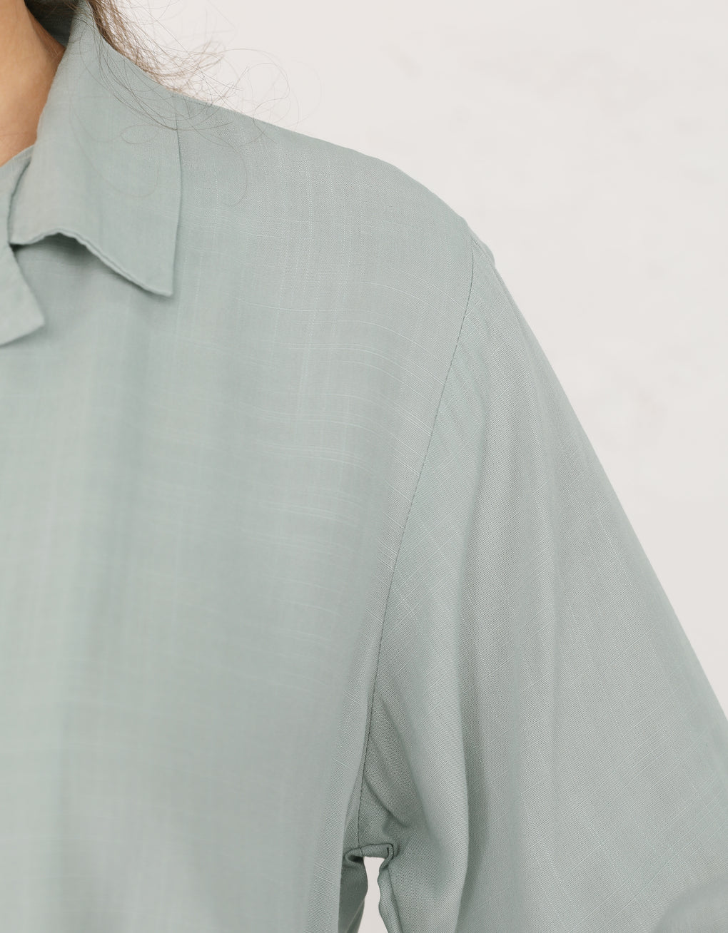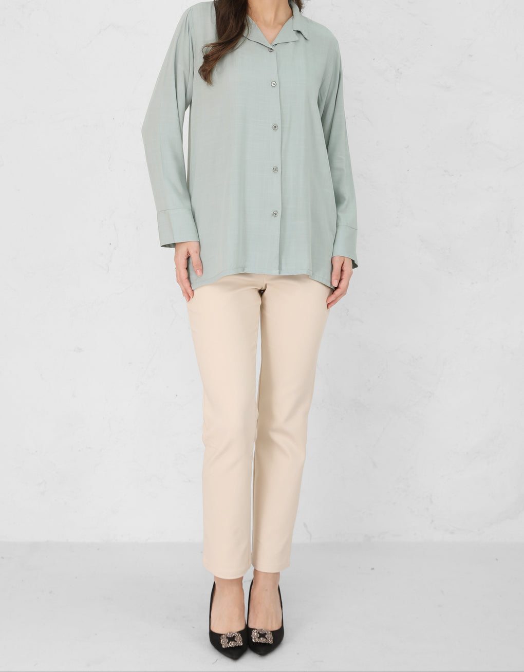 Zandra Top; long-sleeve relax fit shirt in our cotton rayon fabric, with notched collar and button-up. The lightweight and breathable fabric makes it ideal for warmer days, ensuring long-lasting wear.