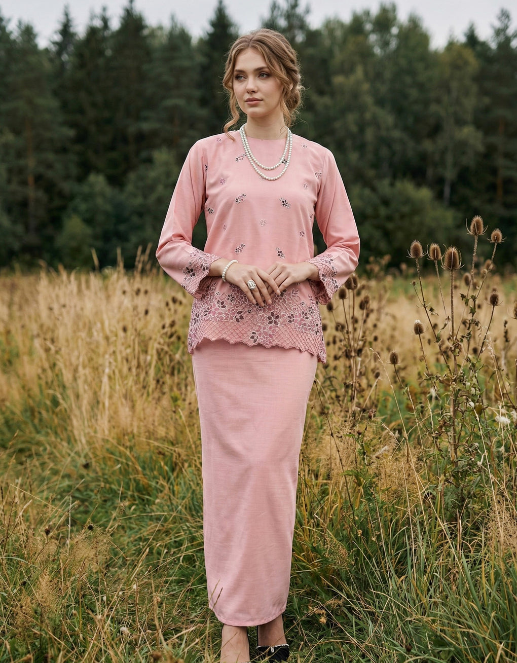 BAJU KURUNG KEDAH AVELINE (DUSTY PINK)