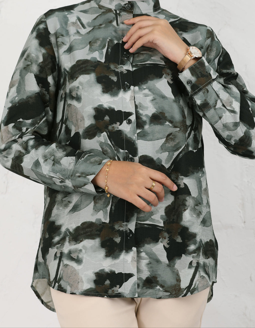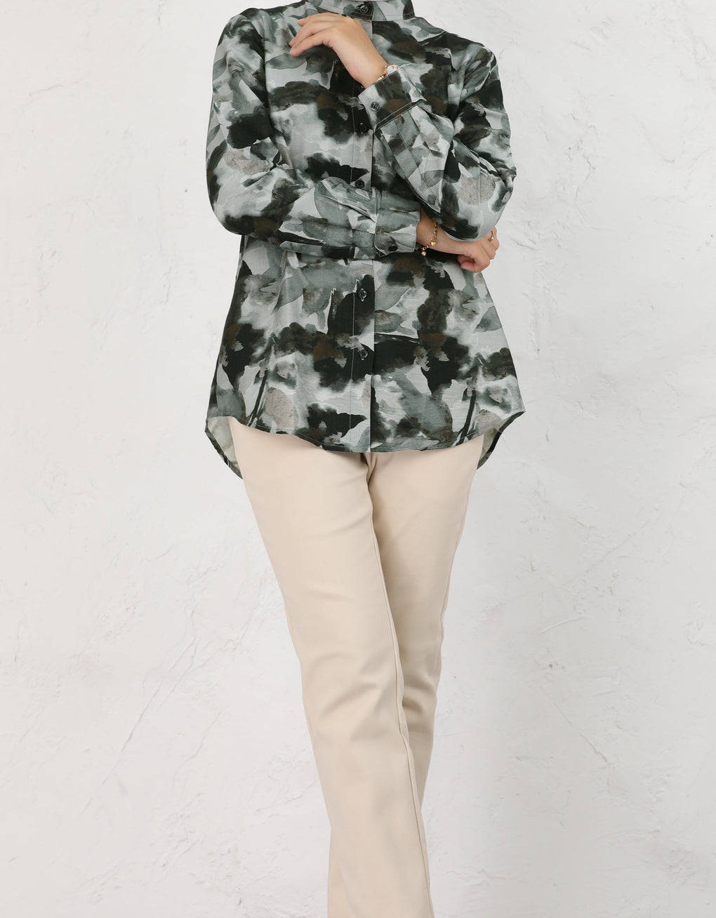 ✿ Buttoned down shirt with mandarin collar