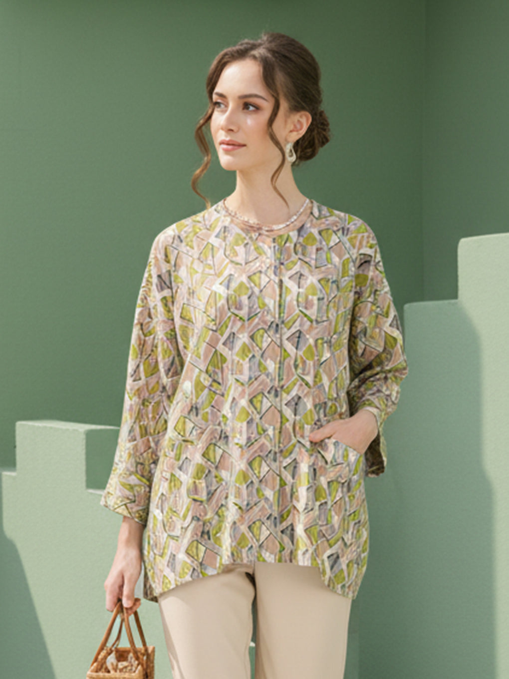 Introducing the YURI TOP the perfect addition to elevate your wardrobe. This oversized top is made with premium shantung crepe fabric, offering a luxurious cotton feel with a soft touch. Two front pockets add style and convenience, making it suitable for any occasion. Stay comfortable and chic with this expertly crafted and sophisticated top.
