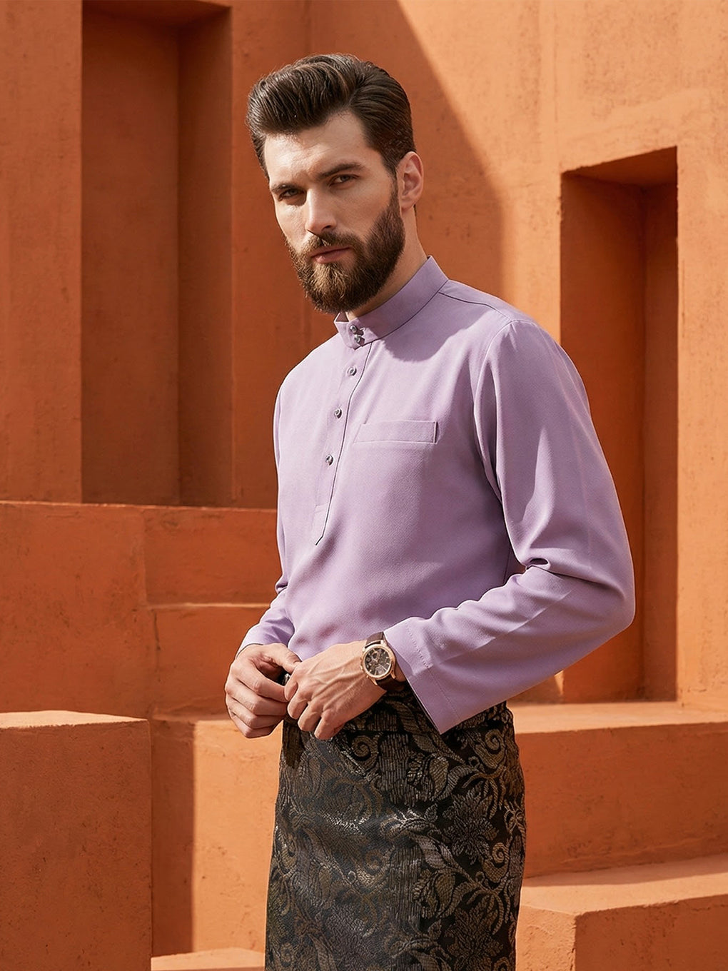 A Modern take on the classic Baju Melayu Cekak Musang  - clean lines, tailored fit, and refined details for a sleek traditional look. Perfect for Raya, Wedding or formal events. This timeless piece blends heritage with cotemporary style.