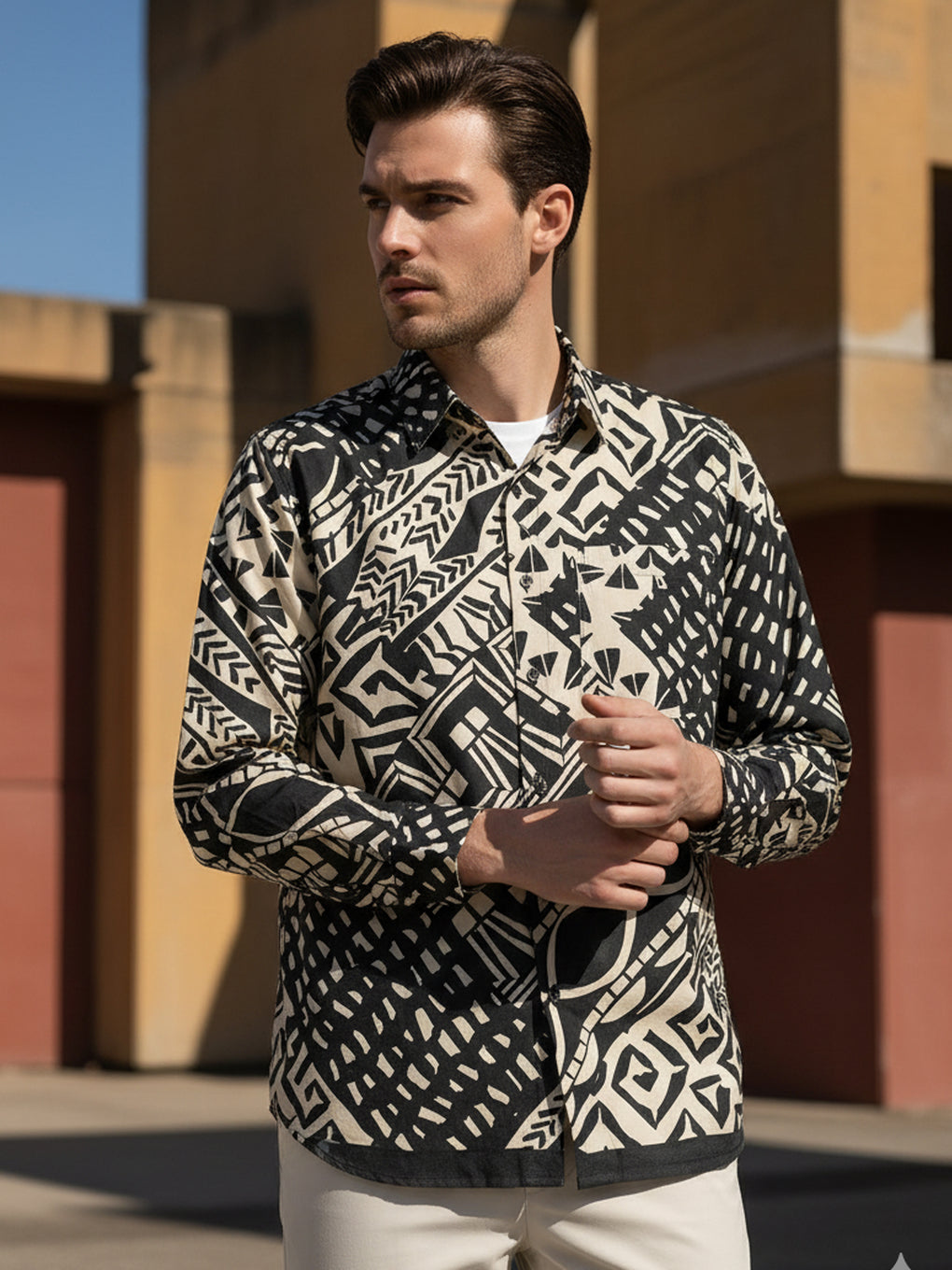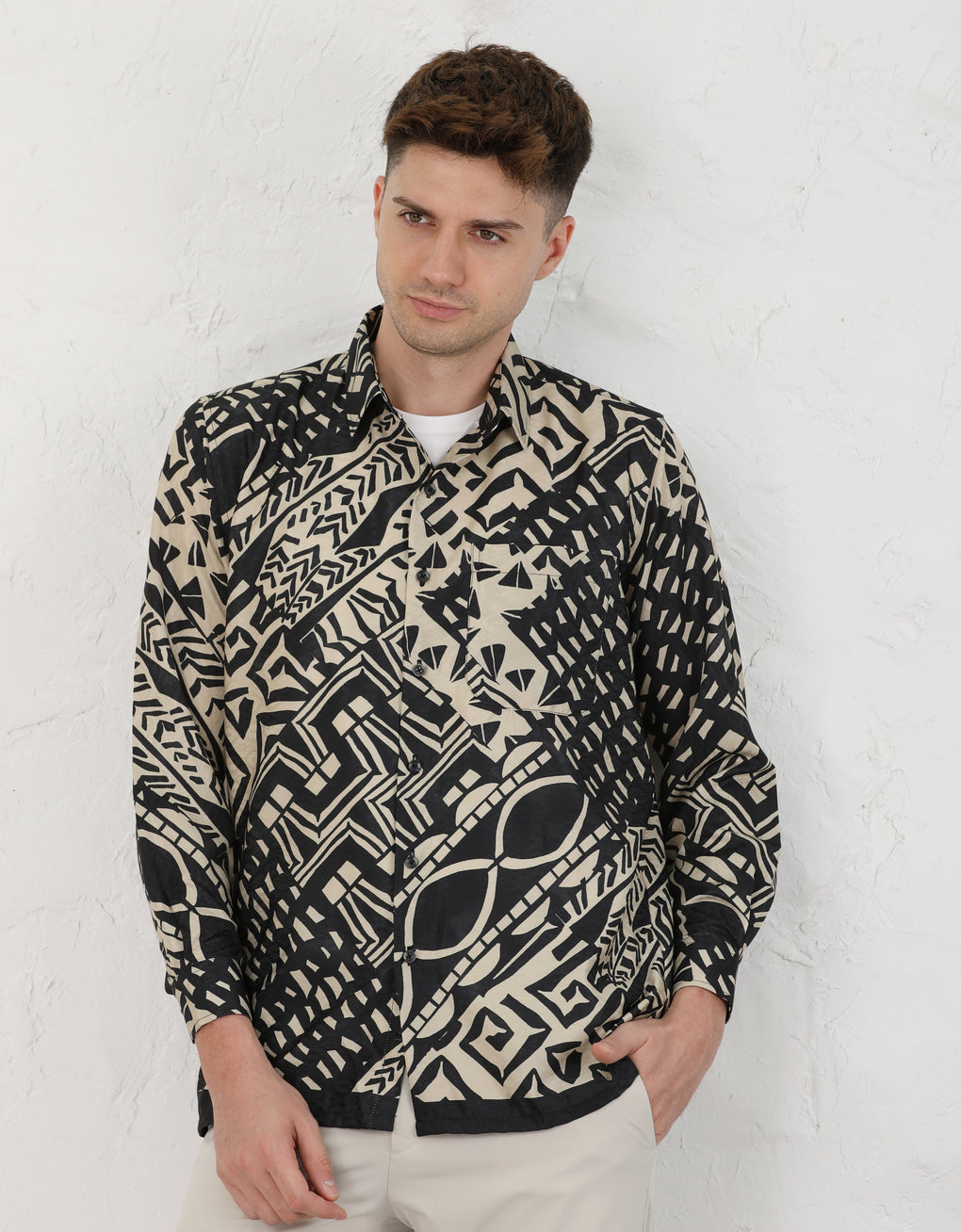 Regular fit collar shirt with long sleeves and button fastening on the front.