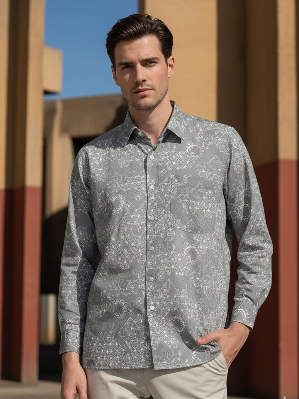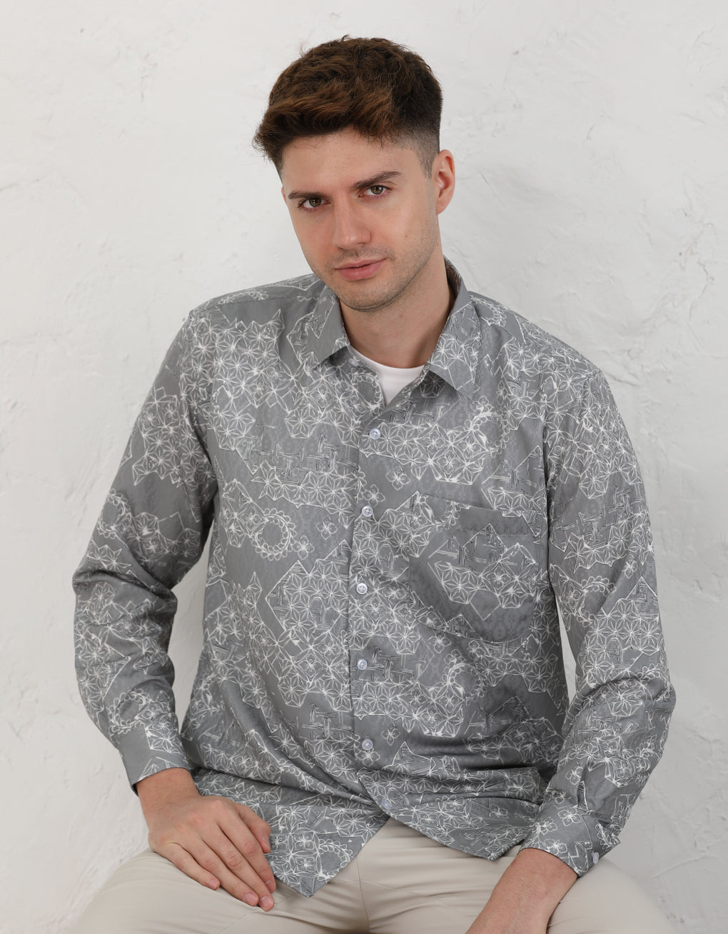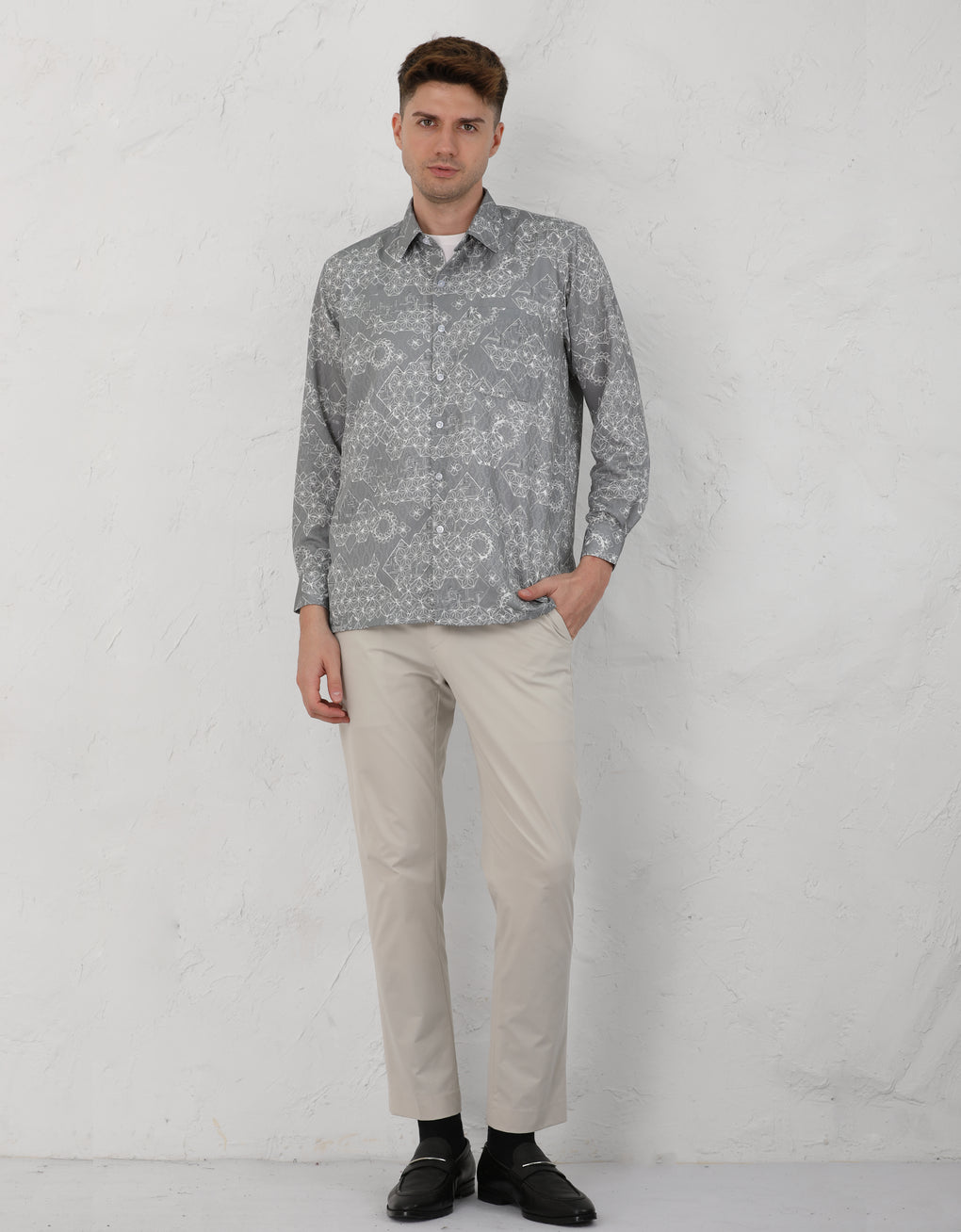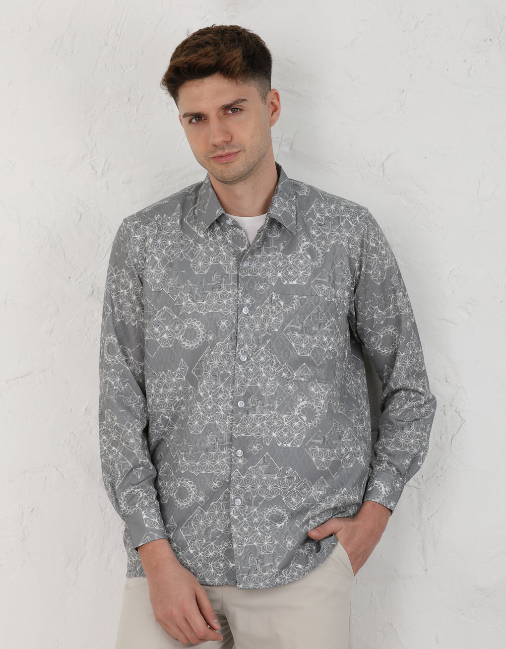 Regular fit collar shirt with long sleeves and button fastening on the front.
