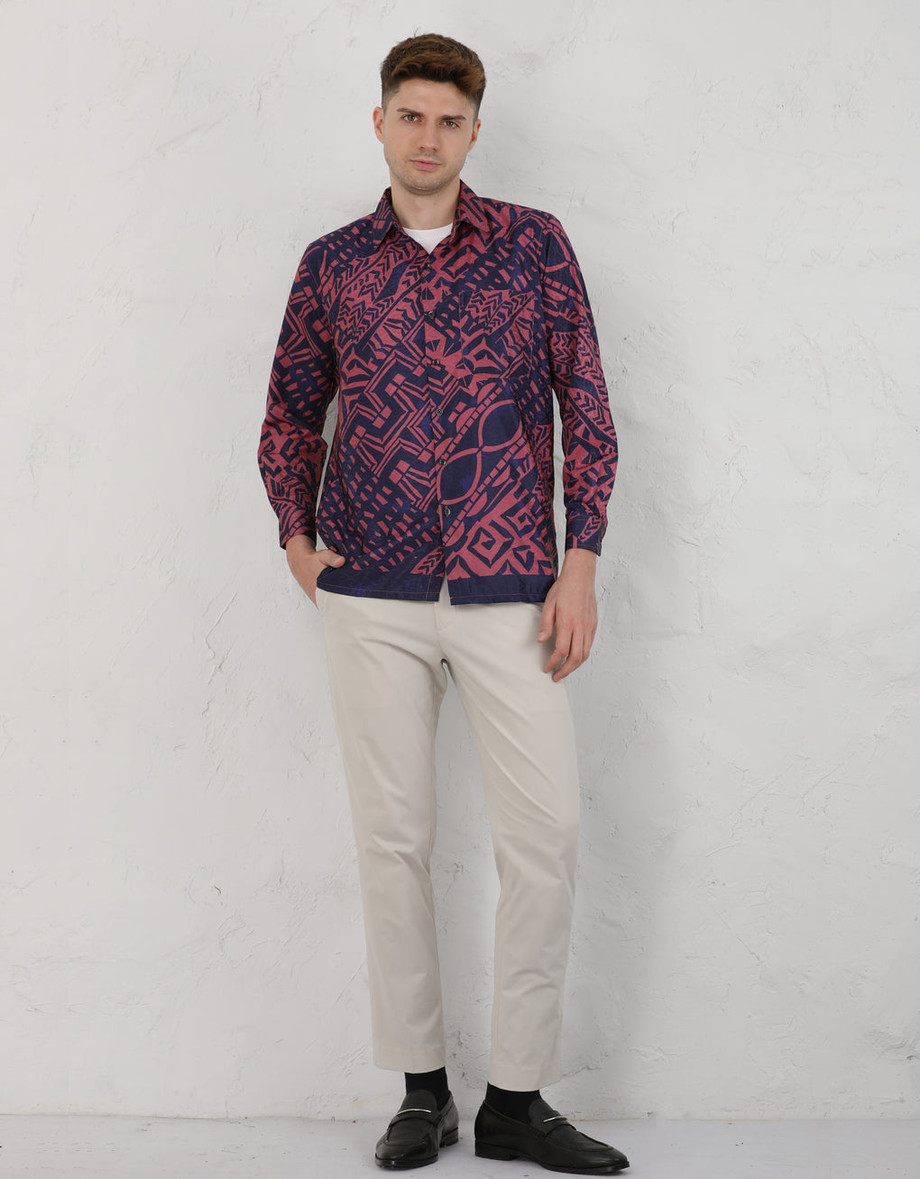 Regular fit collar shirt with long sleeves and button fastening on the front.