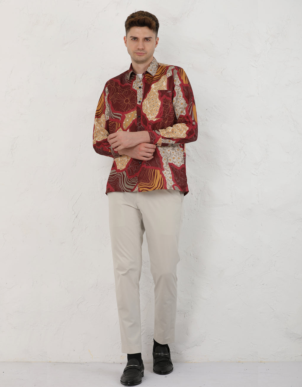 Regular fit collar shirt with long sleeves and button fastening on the front.
