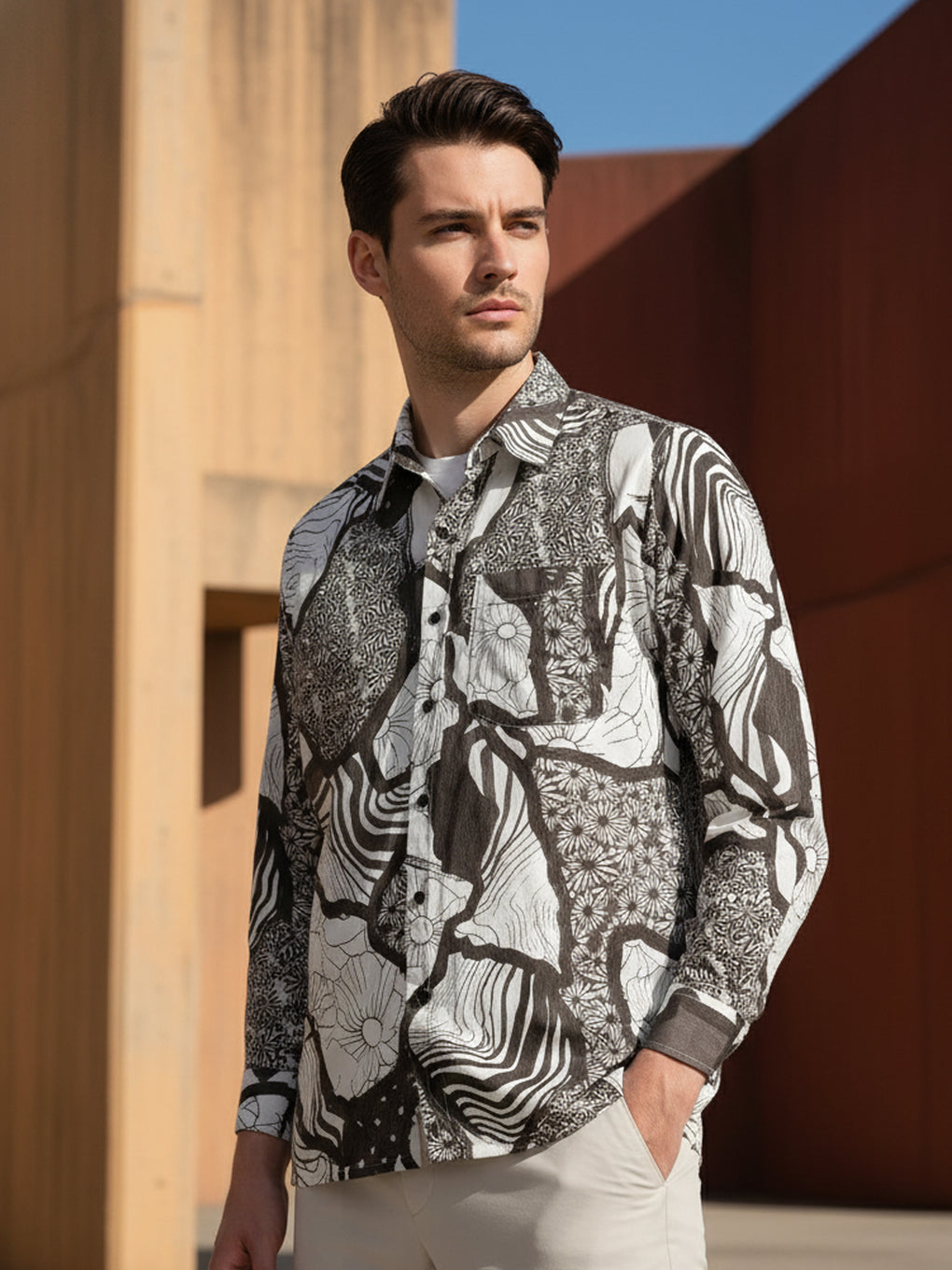Regular fit collar shirt with long sleeves and button fastening on the front.