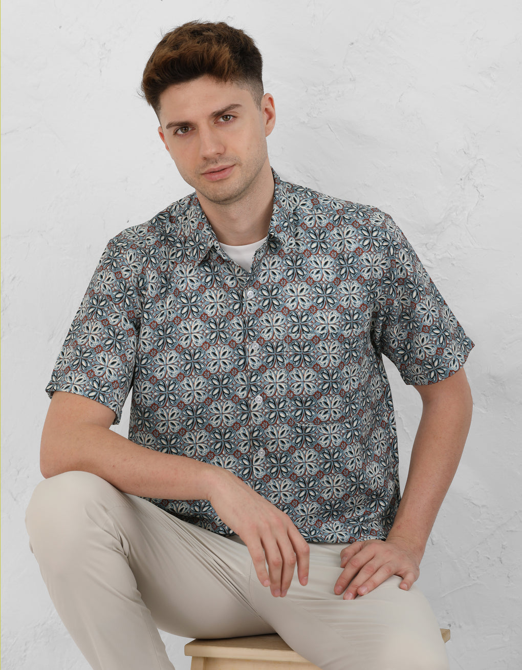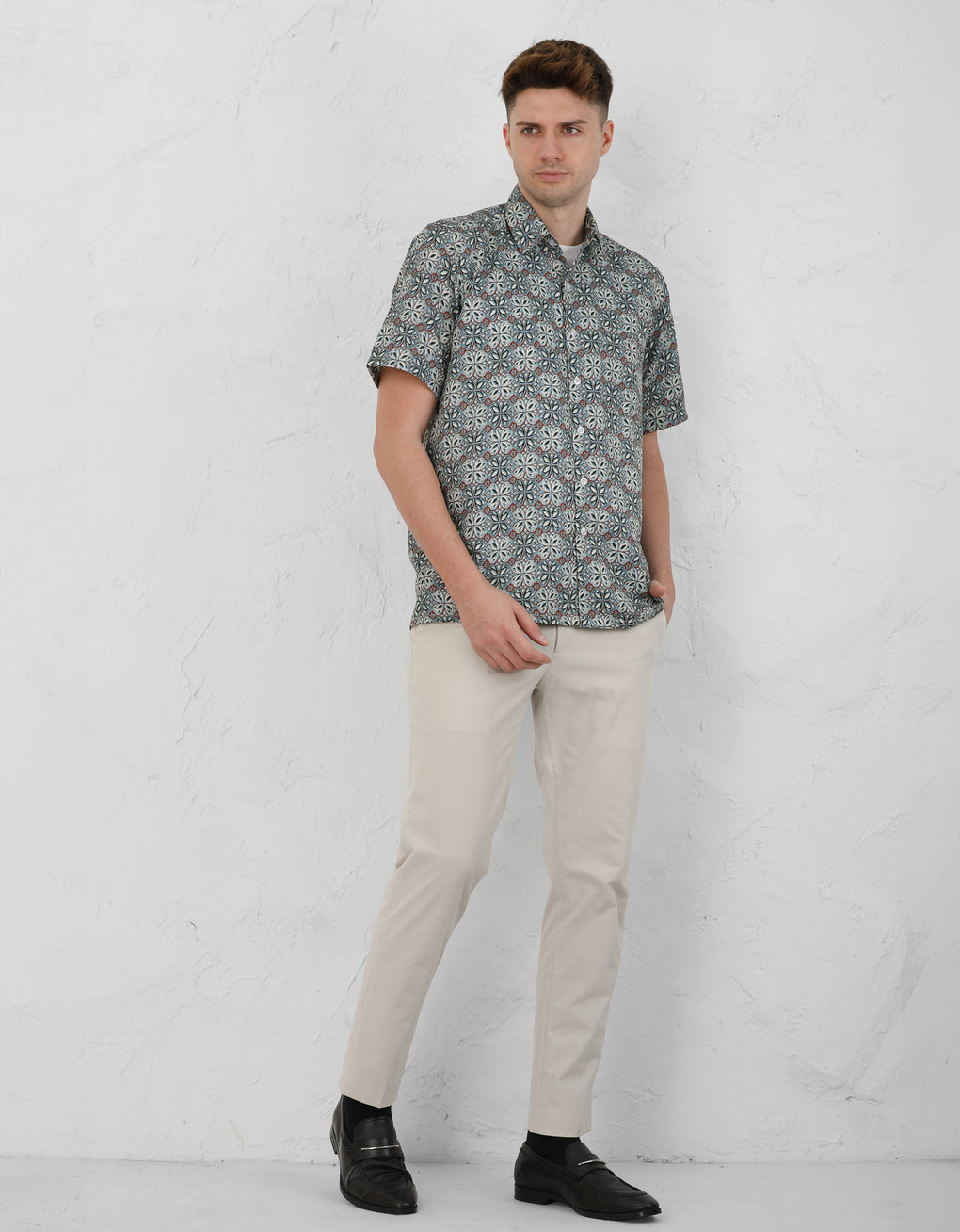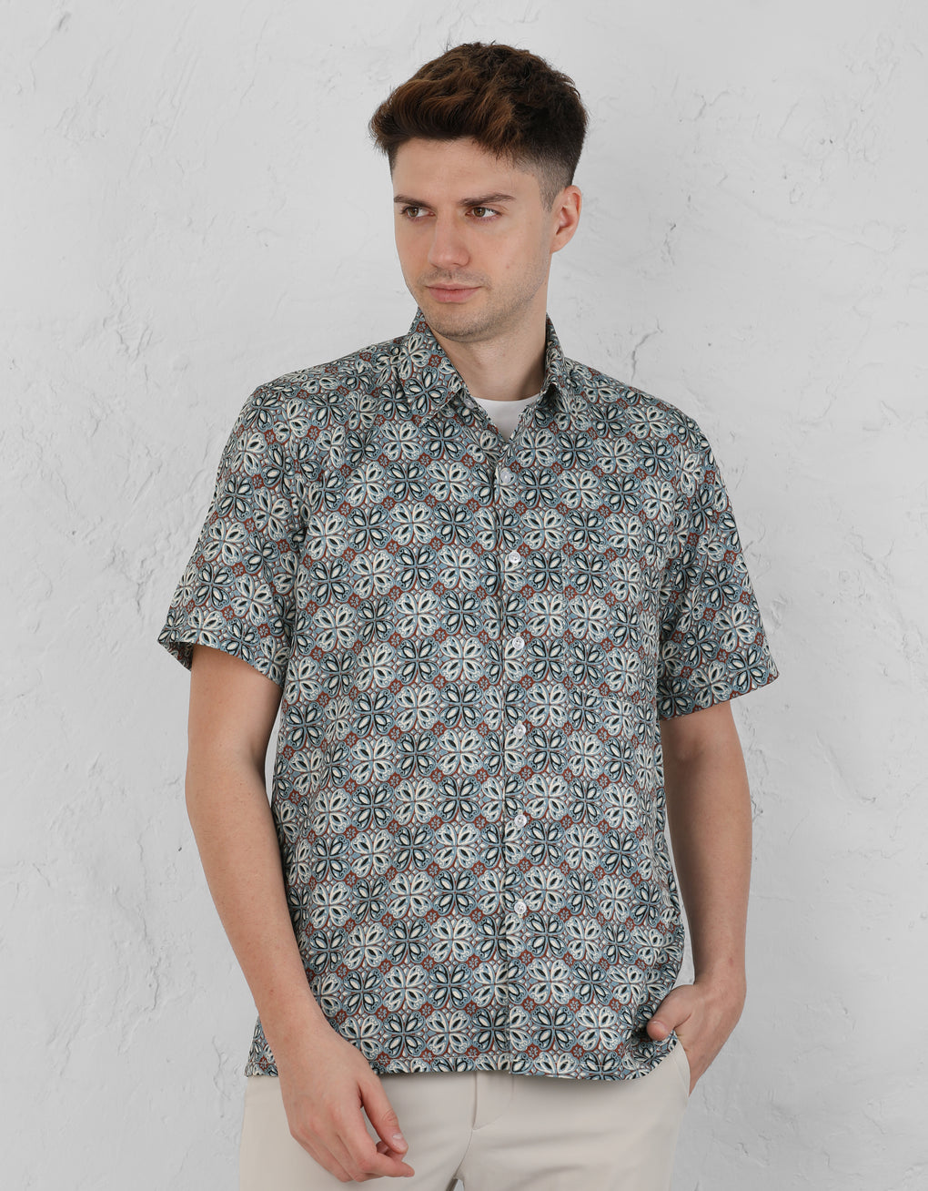 Regular fit collar shirt with short sleeves and button fastening on the front