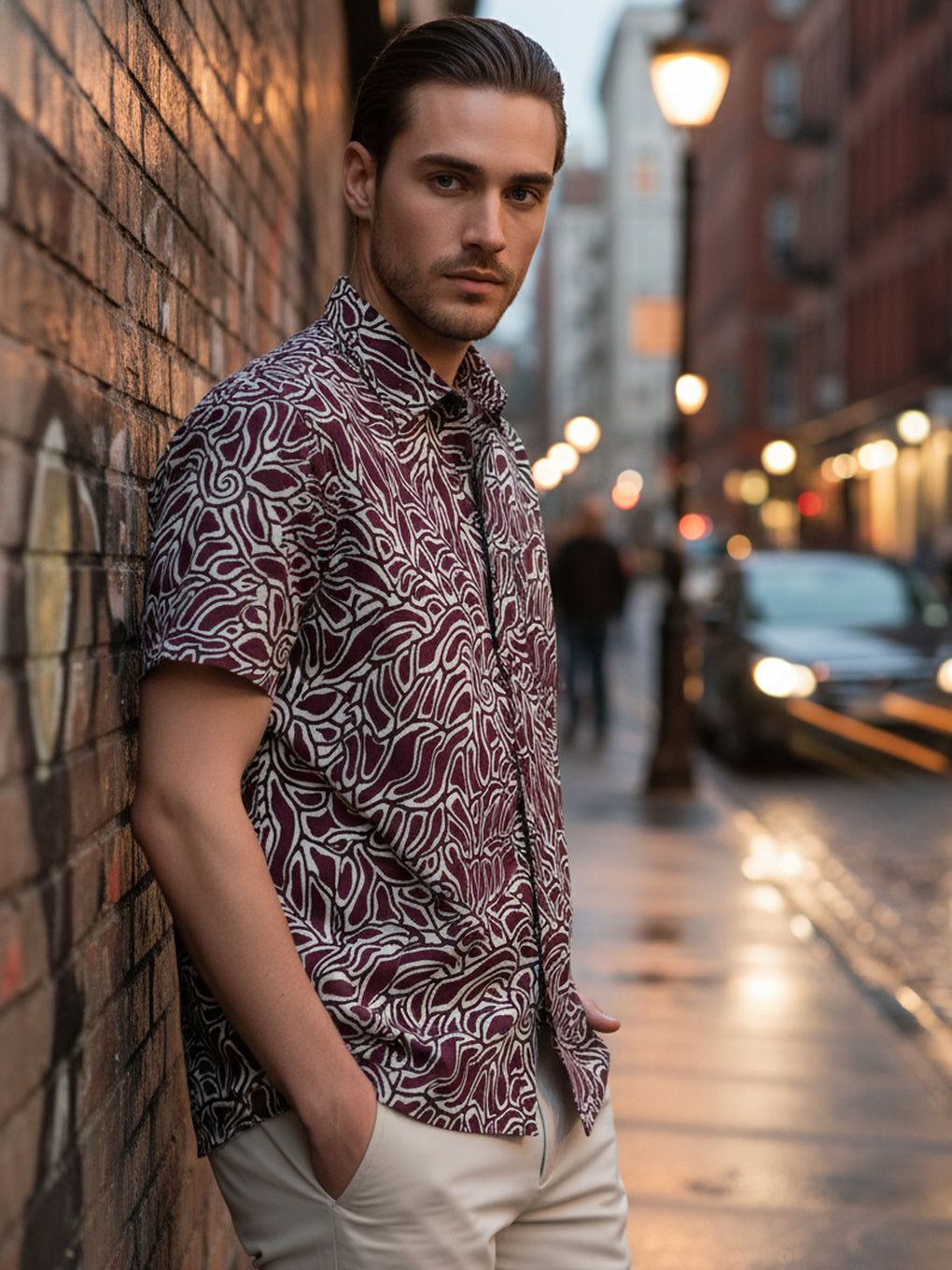 HADID SHIRT SHORT SLEEVE (BURGUNDY WINE)