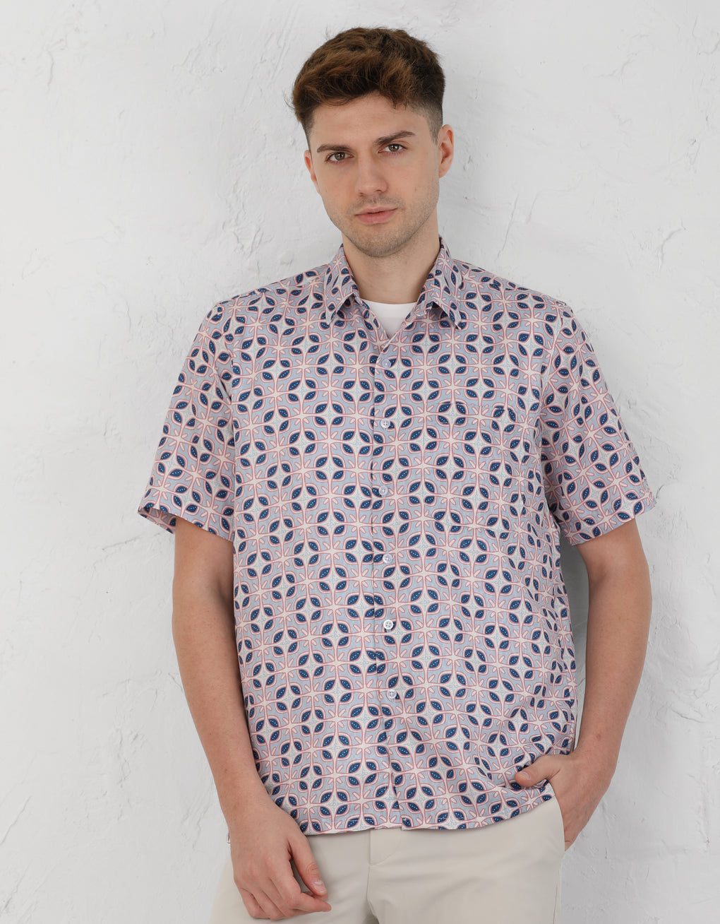 Regular fit collar shirt with short sleeves and button fastening on the front